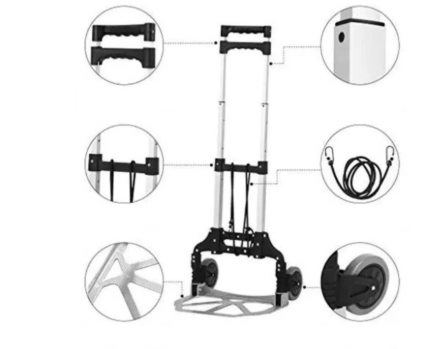 Carucior multifunctional pliabil cu platforma si roti max 75kg, extensibil, sistem antialunecare, 100cm Carucior multifunctional pliabil, extensibil, cu roti pivontante si platforma anti-alunecare, reprezinta solutia ideala pentru manipularea bagajelor in siguranta cu un efort minim. Este realizat din materiale de inalta calitate, aluminiu, plastic si silicon pentru manipulare usoara si durabilitate indelungata. Este foarte simplu de uti1lizat si depozitat. Este foarte util si practic, se pliaza pentru a fi usor de depozitat si transportat.