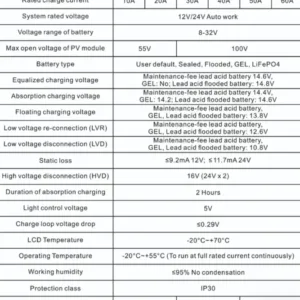 Acest controler MPPT 60 amperi de incarcare solara este un incarcator solar avansat cu urmarire a punctului de putere maxima.