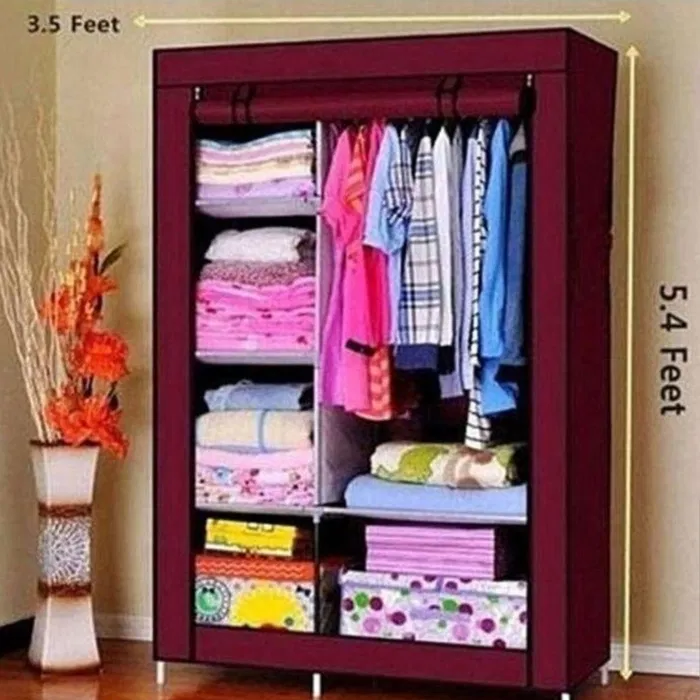 Dulap textil multifunctional cu rafturi si umerase pentru haine