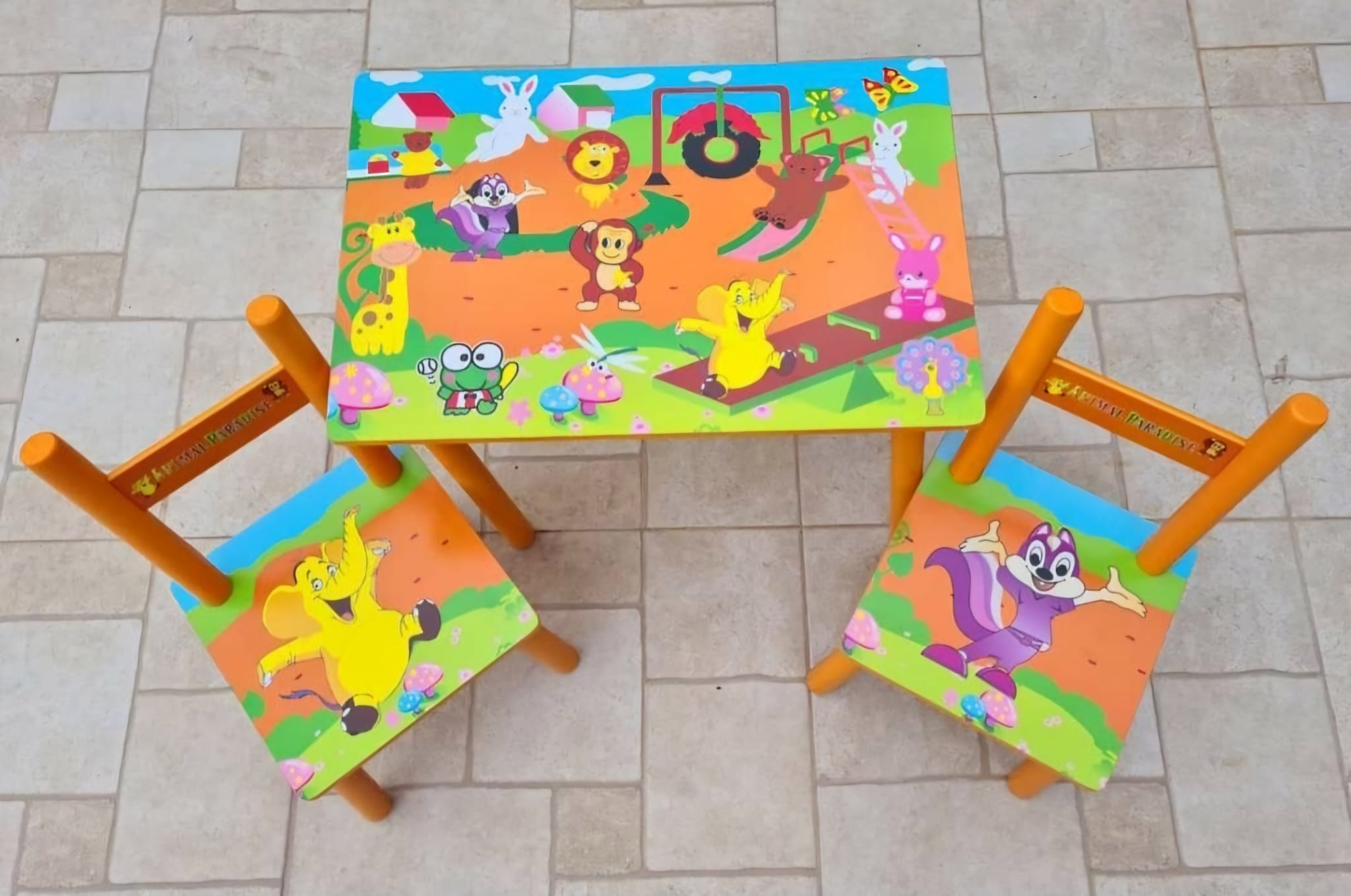 Blatul si sezutul sunt confecționate din MDF colantat cu melamină de culori vesele și ușor de curățat, fiind lucioase, acestea sunt foarte rezistente.