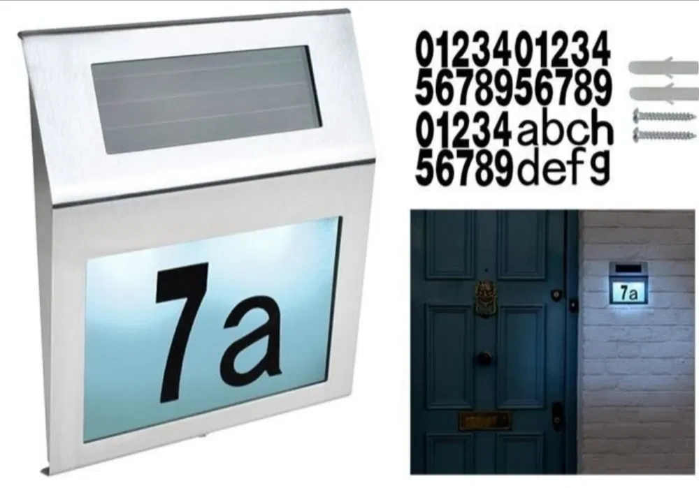 Numar de casa LED cu incarcare solara litere a-h cifre 0-9