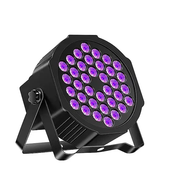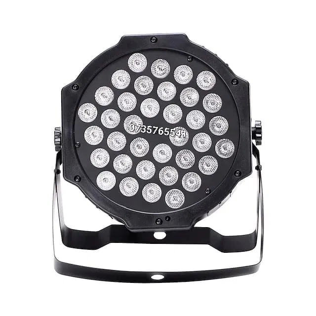 Proiectorul are in componenta 36 leduri – 12 rosii, 12 albastre, 12 verzi ce produc un joc spectaculos de lumini, fiind ideal pentru cluburi, petreceri private sau terase, iar stroboscopul functioneaza automat sau se activeaza la sunet.