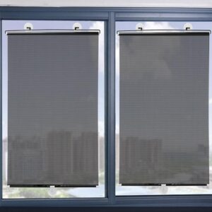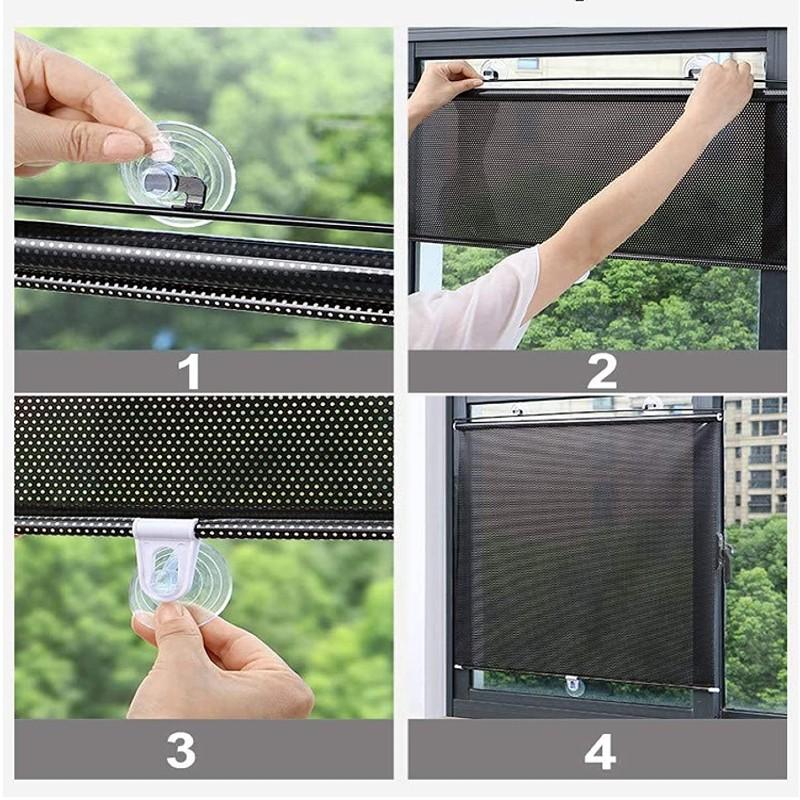Ruloul de tip jaluzea poate fi fixat in pozitie extinsa prin agatarea de ventuza si folosirea unei incuietori. Metoda de perforare a materialului asigura absorbtia a aproximativ 70% din razele soarelui. Dimensiune: Latime 45 cm x Lungime 125 cm.