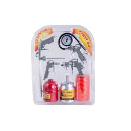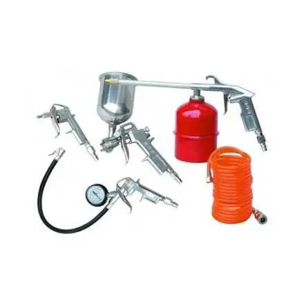 Set pneumatic de 7 elemente DESCRIERE Toate elementele setului sunt caracterizate de o manopera excelenta si perfecta. Pistolul de pulverizare pentru vopsea cu rezervor superior este ideal pentru vopsirea cu vopsele metalice, lacuri, acrilice si apa. Ea functioneaza excelent in refinishing auto. Pistolul de spalare are o duza lunga si practica de pulverizare care faciliteaza curatarea si curatarea. Pistolul de pompare cu manometru este perfect pentru pomparea si controlul presiunii pneurilor pneumatice. Are o carcasa de ceas de cauciuc. Este echipat cu o supapa de eliberare a aerului. Furtun spirala de 5 m pentru conectarea sculelor pneumatice, pistoale de pulverizare, alte dispozitive pneumatice sau pentru extinderea furtunurilor pneumatice. Arma de lovire va fi de ajutor atunci cand scoateti murdaria din locurile prost accesibile. Setul include 3 sfaturi care sunt utile, printre altele in bile de pompare, pontoane, roti auto, jucarii, saltele.