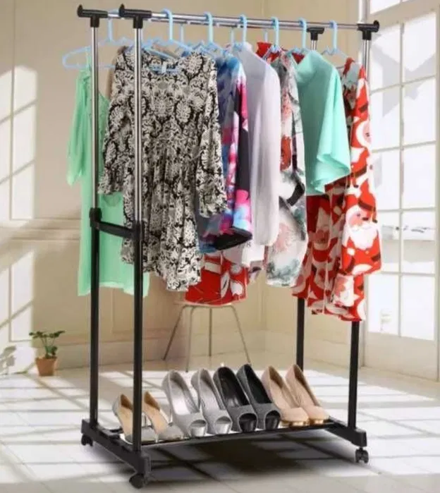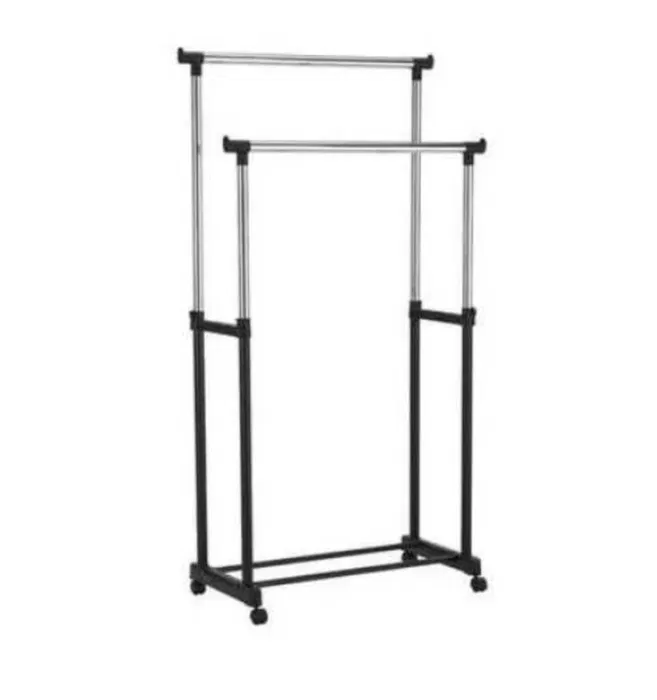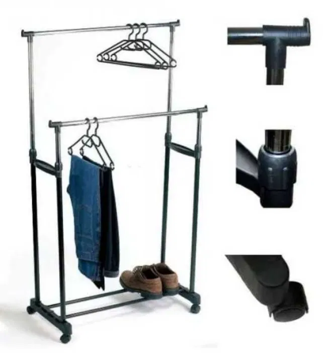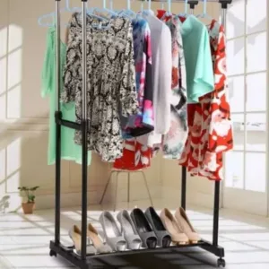 Be the first to review “Suport metalic mobil dublu cu roti pentru umerase imbracaminte pantofi”